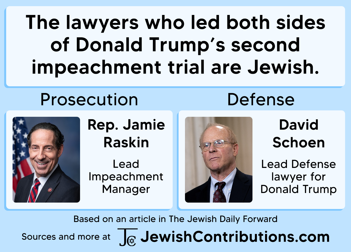 The lawyers leading both sides of the trials determining Donald Trump’s second impeachment are Jewish.